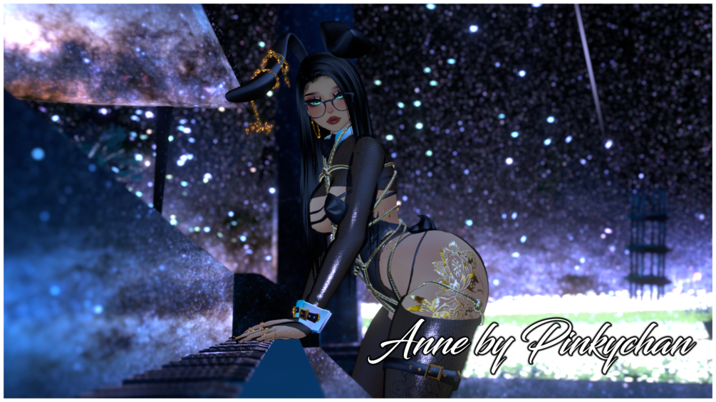 Hair long, Hair bun, Lashes | Base (edit by me NO re use) | Head, Head texture (edit by me NO re use)| Tattoo texture| Bunny cuffs, choker, garter, heels, bodysuit, body texture| Body texture| Fans| stockings, tops, underwear| Earrings| Rings| Tail| Glasses| Bunny follower| Rope| Bunny Mask (Nitro)| Bunny Ears (Nitro)